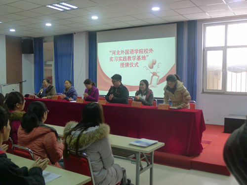 | 2016年11月15日,河北外國語學(xué)院日語學(xué)院行政院長李成、河北外國語學(xué)院日語學(xué)院業(yè)務(wù)副院長張桉菂、 河北外國語學(xué)院日語學(xué)院就業(yè)處處長田沙攜35名大學(xué)生來公司,首先進行了“河北外國語學(xué)院校外實習(xí)實踐教學(xué)基地”授牌儀式,公司總經(jīng)理曹艷爽、綜合事業(yè)部主任尚躍華、手冊編譯部主任強紅出席了授牌儀式。儀式上播放了公司宣傳片、《國超之歌》,強主任重點講解了手冊編譯部的主要業(yè)務(wù)情況,并帶領(lǐng)河北外國語學(xué)院日語學(xué)院領(lǐng)導(dǎo)及師生參觀了公司,并讓同學(xué)們參加了日語試譯活動,讓同學(xué)們體驗了工作的感覺。公司會為實習(xí)實踐的學(xué)生提供最好的機器設(shè)備和舒適、寬松、安全有序的實習(xí)和生活環(huán)境,會委派具有較高實踐經(jīng)驗和理論水平的人員參與實習(xí)指導(dǎo),確保學(xué)生實習(xí)實踐有良好的效果,為學(xué)生畢業(yè)后就業(yè)打下堅實基礎(chǔ)。