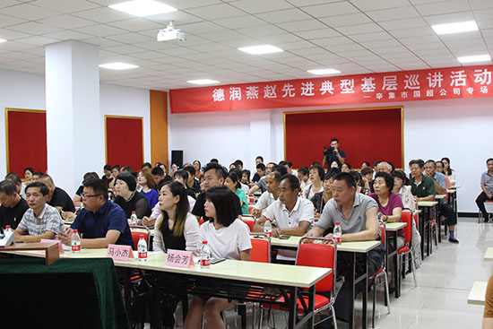 | 2019年6月25日上午,“善行河北 德潤(rùn)燕趙”先進(jìn)典型基層巡講活動(dòng) 辛集市國(guó)超公司專場(chǎng)在我公司舉辦。本次活動(dòng)由河北省文明辦主辦,辛集市文明辦、鹿城辦事處承辦,地點(diǎn)在我公司一樓多功能會(huì)議廳。出席活動(dòng)的領(lǐng)導(dǎo)有:辛集市文明辦主任曹磊、鹿城辦事處主任王書軍等。我公司總經(jīng)理曹艷爽、工會(huì)主席尚躍華帶領(lǐng)公司員工代表、鹿城辦事處代表共計(jì)100余人聆聽了報(bào)告。 鹿城辦事處主任王書軍指出,道德模范、身邊好人等先進(jìn)典型是有形的正能量,是鮮活的價(jià)值觀。各單位領(lǐng)導(dǎo)和同志要以他們?yōu)榘駱樱虻赖履7秾W(xué)習(xí),進(jìn)一步推動(dòng)文明素質(zhì)的整體提升,人人參與創(chuàng)建、人人支持創(chuàng)建,為全市精神文明建設(shè)貢獻(xiàn)力量。 活動(dòng)現(xiàn)場(chǎng),中國(guó)好人、河北好人、河北省最美退伍兵、中國(guó)人民銀行衡水市中心支行科員郝宏銀,堅(jiān)持42年幫老人、執(zhí)勤值班官兵和住校孩子們免費(fèi)理發(fā)、對(duì)患絕癥卻無(wú)錢看病的戰(zhàn)友提供經(jīng)濟(jì)援助!瓣(yáng)光女孩”楊會(huì)芳,從小就擔(dān)負(fù)起照顧全家人的重?fù)?dān),她沒有向命運(yùn)低頭,用不懈的拼搏和努力追逐著夢(mèng)想,換來(lái)了人生的一縷陽(yáng)光。河北省優(yōu)秀志愿者、邢臺(tái)公益服務(wù)協(xié)會(huì)秘書長(zhǎng)、邢臺(tái)市林璋茶葉貿(mào)易有限公司負(fù)責(zé)人韓林璋,組建規(guī)范助學(xué)團(tuán)隊(duì)、策劃“揚(yáng)帆護(hù)航~陽(yáng)光助學(xué)”“笑臉計(jì)劃”等志愿服務(wù)活動(dòng),致力于公益事業(yè)。辛集市馬長(zhǎng)青中醫(yī)診所中藥藥劑師馬小杰,多次組織參與志愿行動(dòng)、資助貧困家庭孩子上學(xué)、聯(lián)系外國(guó)友人連續(xù)兩年資助18個(gè)因大病返貧家庭。他們用質(zhì)樸無(wú)華的語(yǔ)言、真摯細(xì)膩的感情進(jìn)行了講述,一個(gè)個(gè)溫暖故事、一件件平凡善舉令在場(chǎng)的聽眾深受感動(dòng),贏得了現(xiàn)場(chǎng)觀眾陣陣掌聲。大家表示,一定要學(xué)習(xí)他們對(duì)于公益活動(dòng)的執(zhí)著、堅(jiān)守和情懷,關(guān)心社會(huì),奉獻(xiàn)愛心。巡講會(huì)獲得圓滿成功。