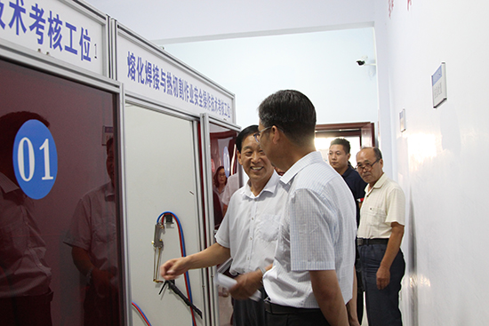 | 2019年7月4日上午,市委書(shū)記王現(xiàn)坤由市委常委、市委辦主任范玉柱陪同調(diào)研辛集市應(yīng)急管理局國(guó)超特種作業(yè)考試點(diǎn)。董事長(zhǎng)劉占查、國(guó)超培訓(xùn)學(xué)校校長(zhǎng)高樹(shù)勛帶領(lǐng)領(lǐng)導(dǎo)們參觀了二樓國(guó)超特種作業(yè)考試點(diǎn)候考室、理論考場(chǎng)、公共科目考場(chǎng)、焊接與熱切割作業(yè)實(shí)操考場(chǎng)、高壓電工作業(yè)實(shí)操考場(chǎng)、低壓電工實(shí)操考場(chǎng)。 王現(xiàn)坤書(shū)記對(duì)特種作業(yè)人員實(shí)施理論和實(shí)操技能培訓(xùn)及考核的方式方法進(jìn)行了詳細(xì)了解,董事長(zhǎng)劉占查、國(guó)超培訓(xùn)學(xué)校校長(zhǎng)高樹(shù)勛從考試點(diǎn)軟硬件設(shè)施建設(shè)管理情況、2019年上半年培訓(xùn)考試運(yùn)行情況、考生來(lái)源與培訓(xùn)管理等方面進(jìn)行了詳細(xì)匯報(bào)。 王現(xiàn)坤書(shū)記對(duì)辛集市應(yīng)急管理局國(guó)超特種作業(yè)考試點(diǎn)2019年上半年的運(yùn)營(yíng)情況表示肯定。該考試點(diǎn)于2019年1月25日正式投入運(yùn)行,通過(guò)實(shí)際操作、仿真模擬操作等方式,對(duì)考生進(jìn)行安全用具使用、安全操作技術(shù)、作業(yè)現(xiàn)場(chǎng)安全隱患排除、作業(yè)現(xiàn)場(chǎng)應(yīng)急處置等考核,使辛集市特種作業(yè)人員(電工、焊工等)免除了去外地考試之苦,實(shí)現(xiàn)了培訓(xùn)、理論及實(shí)操考試一體化,為廣大特種作業(yè)人員新辦、復(fù)審及換證提供了極大方便,為企業(yè)的安全生產(chǎn)提供了有力的支撐。