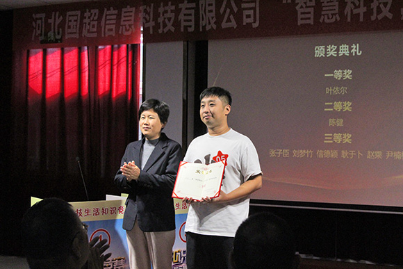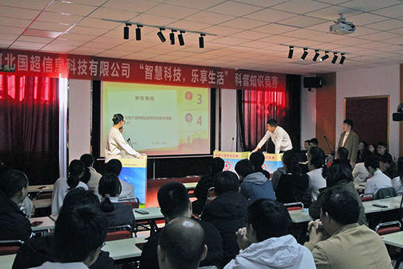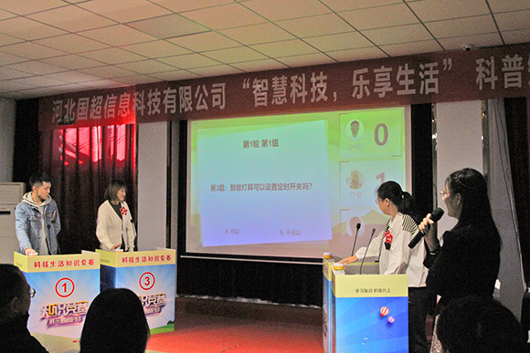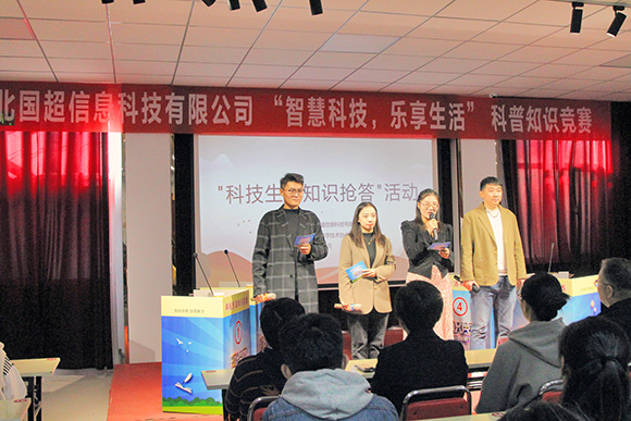 我公司于2024年10月19日上午,在辛集市科學(xué)技術(shù)協(xié)會(huì)的關(guān)心和支持下成功舉辦了“智慧科技,樂享生活” 科普知識(shí)競(jìng)賽活動(dòng),出席本次活動(dòng)的領(lǐng)導(dǎo)有:市科協(xié)主席王文聚、主任王照、國(guó)超公司總經(jīng)理曹艷爽、國(guó)超公司工會(huì)主席尚躍華。本次競(jìng)賽旨在提高公眾對(duì)科學(xué)知識(shí)的了解和興趣,通過一系列富有趣味的挑戰(zhàn)和問題,探索了科學(xué)的奧秘和樂趣;顒(dòng)現(xiàn)場(chǎng)氣氛熱烈,參賽者們熱情高漲,積極搶答各類科技問題。觀眾席上也同樣活躍,大家為參賽者的精彩表現(xiàn)鼓掌歡呼,不時(shí)爆發(fā)出陣陣笑聲和掌聲。特別是在一些互動(dòng)環(huán)節(jié)中,觀眾們更是積極參與,與參賽者共同探討科技知識(shí),展現(xiàn)出了濃厚的興趣和熱情。
